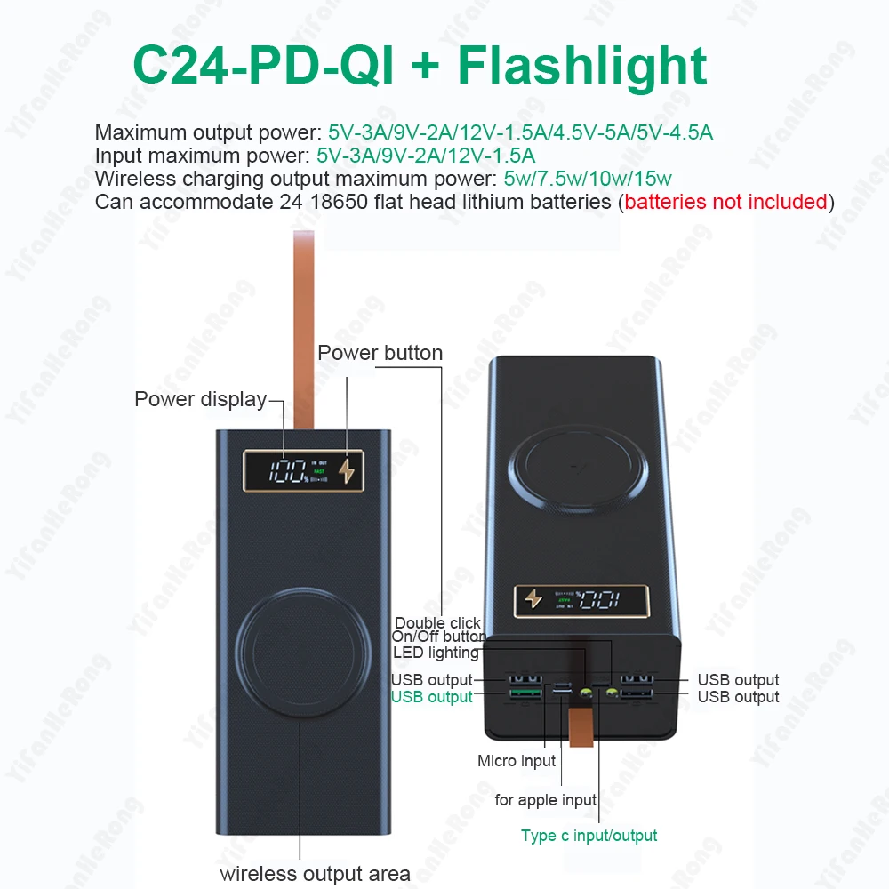 Quick Charge + Wireless Charge Version Maximum Power: 5V-3A 9V-2A 12V-1.5A 3.4V-5.5V-5A, Wireless Charging :5W/7.5W/10w/15W